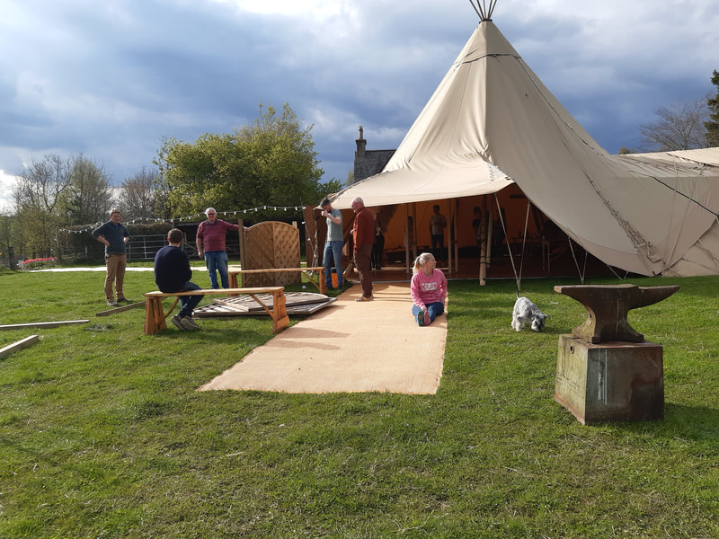 The start of this year was busy busy getting the Wee Tree Howf finished and we were wedding planning! The Wee Tree Howf, I think, is the best yet! Ian and Lewis did a fabulous and very quirky job on it! Upstairs the bedroom has such a special feel to it, Robinson Crusoe would approve! Hayley our daughter was married to Matt, here in the field in a tippee at the end of April. It was really special to finally have the wedding here which like so many was delayed by a year.