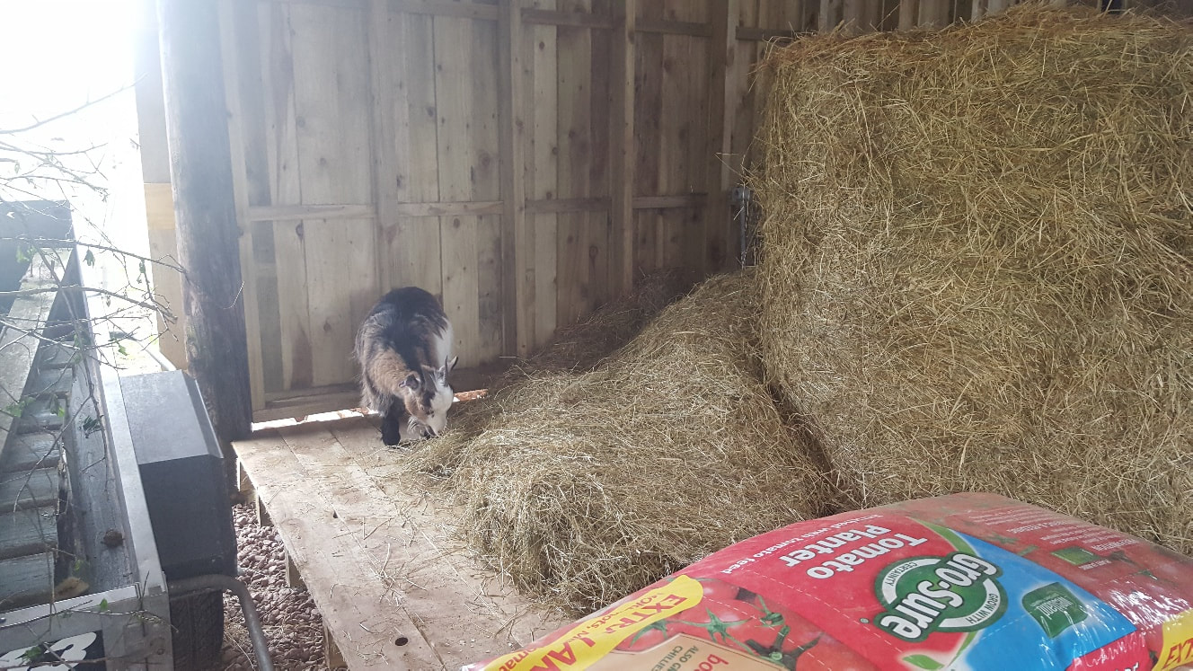 Our pygmy goats – Harris and Percy Jackson have decided it is great fun to escape and head for the hay shed – self service reached new limits!
